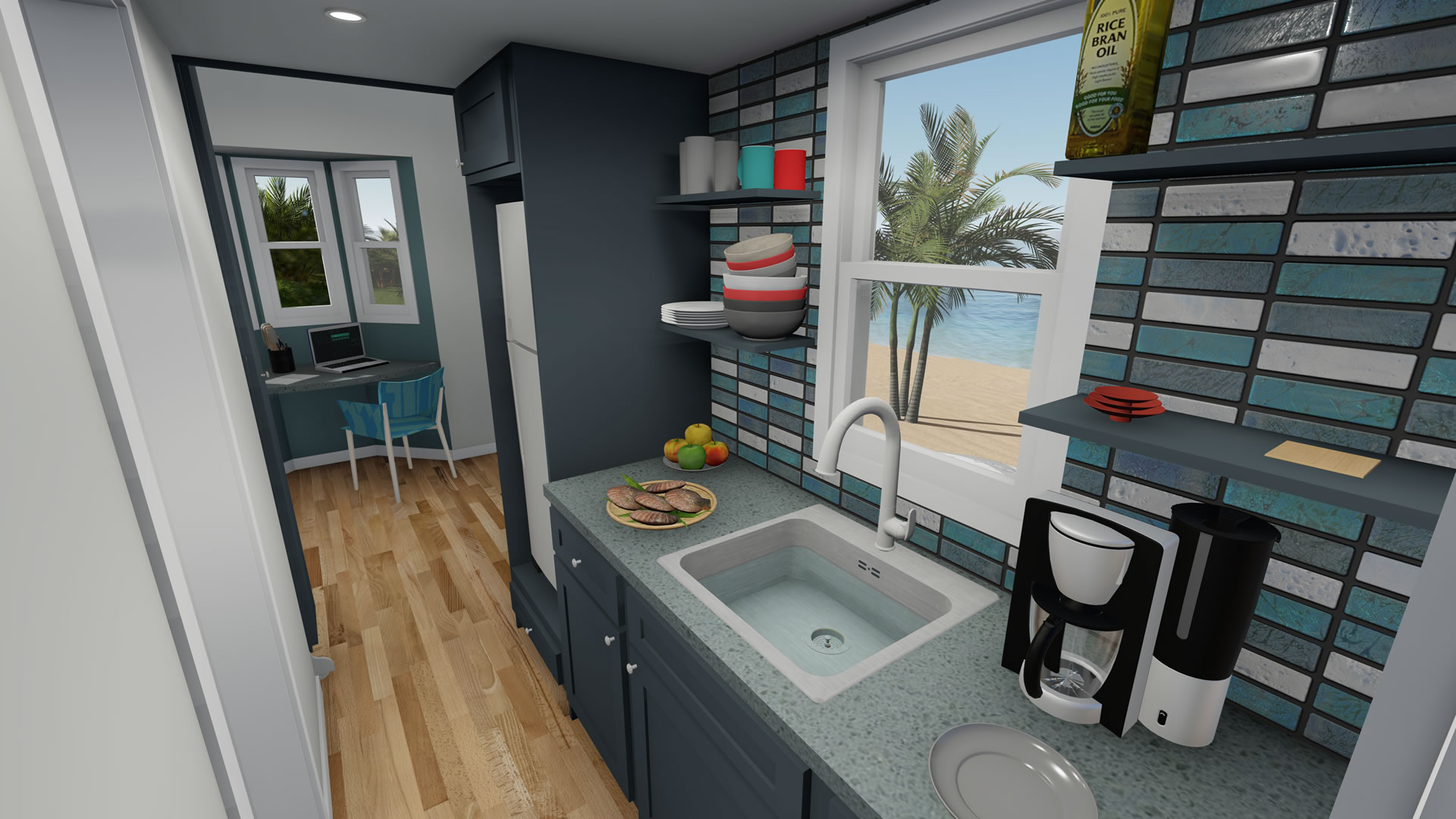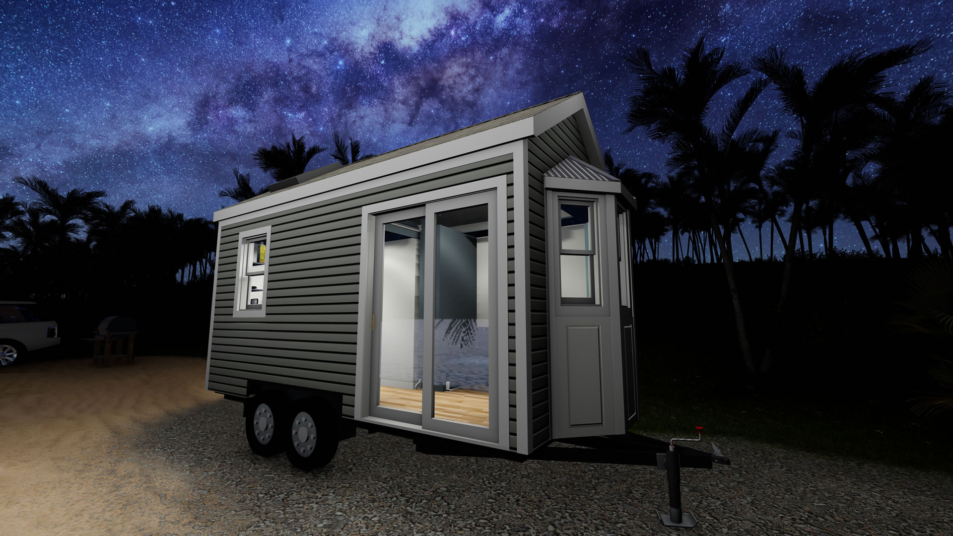 When we think Boardwalk, we think of a walk constructed along a beach and that is why we call this the Boardwalk! This travel trailer is large enough yet petite enough to take to those remote locations. At 198sq.ft. it’s the perfect size for rest and relaxation. The exterior has that traditional look and features a nice bay detail to provide some fantastic panoramic views. Depending on your choice of exterior materials, textures and colors, this home can go from a beach house look to a clean contemporary farmhouse. Stepping through the large sliding glass door you are welcomed with tall vaulted ceilings, a magnificent desk space with those panoramic views, and a space to chill or even sleep if you desire. As you enter the kitchen, you see a nice array of cabinets and appliances to suit one’s cooking needs. Don’t think once you are in the kitchen you lose your views, nope you still get two great viewing angles. The bathroom is compact, yet provides you with the necessities and even storage for those bath products. The main sleeping area is in the loft which is accessed by a ladder. From the queen bed, you have the perfect vantage point to experience those starry nights from 2-skylights! Enjoy your travels, your quick vacations or make this your permanent home. Any way you choose, the Boardwalk will deliver!